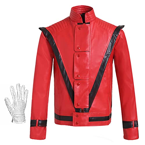Shuanghao Michael Jacks** Unisex Thriller Beat it Giacca Rosso in Pelle del Costume Halloween Ballo Feste Natale Cosplay di Uomo Donna Adulti personalità Costumi(XXS W: 45-49kg H:150-160cm Rosso