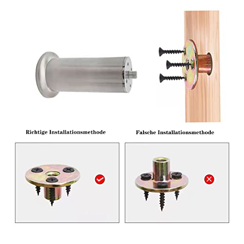 SHUIOG, 4 piedini per mobili in acciaio inox, 10 cm, regolabili in altezza, gambe rotonde, per mobili da tavolo, armadio, divano, gambe di ricambio per cabinet e viti M10 (20 cm)