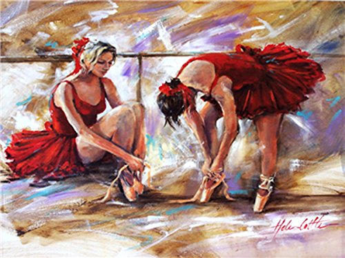 Shukqueen DIY dipinto a olio, adulto, Paint by number Kits, pittura acrilica rosso vestito Dancer 40,6 x 50,8 cm, Dancer, Frameless,Just Canvas