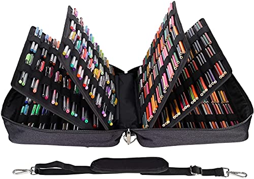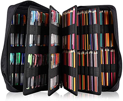 Shulaner 480 Astuccio per 480 matite colorate o 320 penne gel colorate con cerniera, grande capacità in nylon pencil case con tracolla per studenti o artisti - Nero