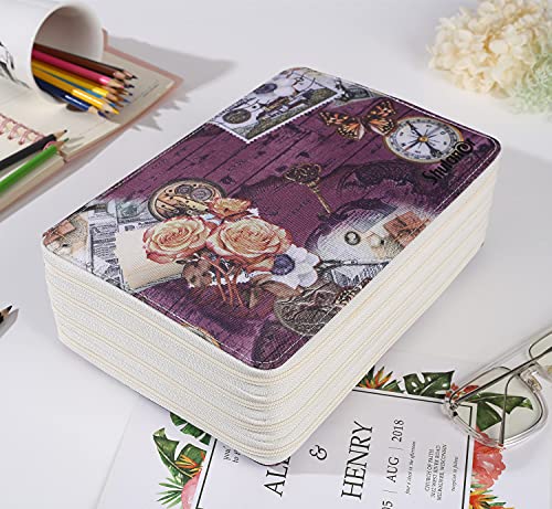 Shulaner Astuccio 120 Slots con 3 Chiusura a Cerniera, Motivo a Elemento Stile Retrò Borsa Organizer Matita, Impermeabile PVC Tessuto 120 Astuccio Portamatite - Viola