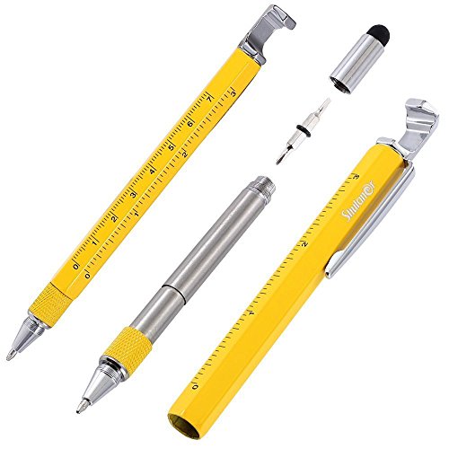 Shulaner 7 in 1 multifunzione strumento di metallo penna con righello, penna, Apribottiglie, supporto per telefono, Stylus e 2 cacciavite, Utensile multifunzione Pen Fit per uomo, padre regalo Giallo