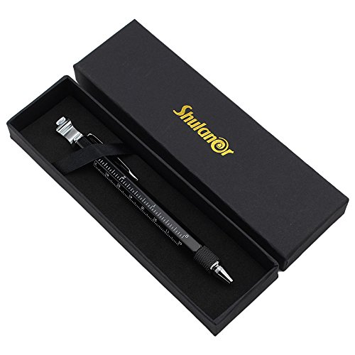 Shulaner 7 in 1 multifunzione strumento di metallo penna con righello, penna, Apribottiglie, supporto per telefono, Stylus e 2 cacciavite, Utensile multifunzione Pen per uomo padre regalo - Nero