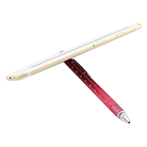 Shulaner 7 in 1 Tech Tool Pen con righello, apribottiglie, Phone stand, penna a sfera, stilo e 2 cacciavite strumento multifunzione, adatta per uomo, padre regalo - Rosso