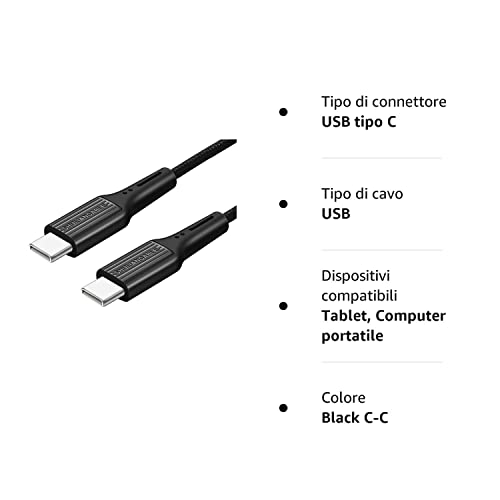 SHULIANCABLE Cavo USB C a USB C, Cavo USB Type-C Ricarica Rapida in Nylon per iPad Pro 2020, MacBook Pro 2020, iPad Air 4, Samsung S20 S10 S9, Xiaomi, Huawei, Pixel, switch (1M, black C-C)