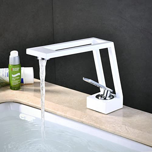 SHUNLI Rubinetto Bagno Miscelatore Lavabo,Rubinetto moderno Lavabo in Ottone,Design Creativo Rubinetti Lavabo,Bianco e Cromo