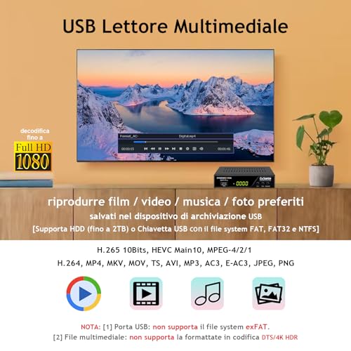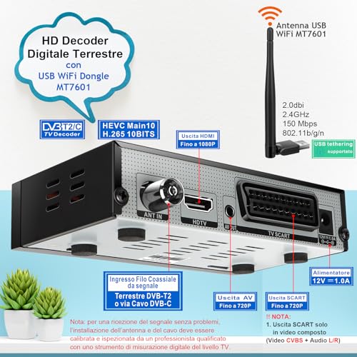 [Decoder Digitale Terrestre 2024] Se il televisore non provvisti di DVB-T2 H.265 HEVC Main10 decodifica, ma ancora validi e perfettamente funzionanti, questo è un soluzione economico passare vecchia televisore al nuovo segnale televisivo dvb-t2 hevc h.265. Risparmia budget per acquistare nuovi televisione