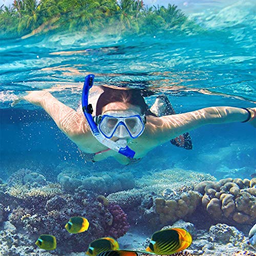 ShuoBeiter Dry Snorkel Diving Tube Tubi Adulto Asciutto Boccaglio con Confortevole Silicone Immersioni con bombole (Blu, 49cm)