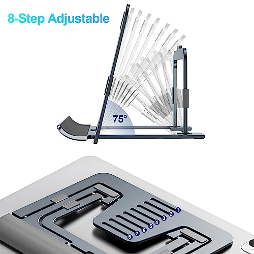 SHUOSUO Supporto Tablet Regolabile e Pieghevole, Porta Sottile Portatile in Alluminio per Tavolo, Compatibile con iPad Pro/Air/Mini, Samsung Tab, Surface Pro, Kindle Fire (7-13") (Grigio)