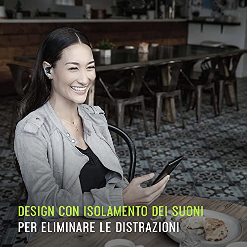 VESTIBILITÀ SICURA - Vestibilità sicura e aderente. Realizzati con lo stesso design a basso profilo dei sistemi di monitoraggio in-ear usati dai musicisti sul palco. I tuoi auricolari restano sempre al loro posto, assicurandoti un impareggiabile comfort di lunga durata anche nelle attività più movimentate.