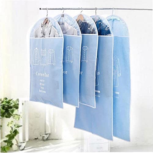 Shuwen 5 Pezzi Custodia Porta Abiti, Buste per Indumenti con Cerniera, Copriabiti Antipolvere Traslucida, PEVA Lavabile Buste per Abiti per Smoking, Giacca, Camicie, Gonne-Beige