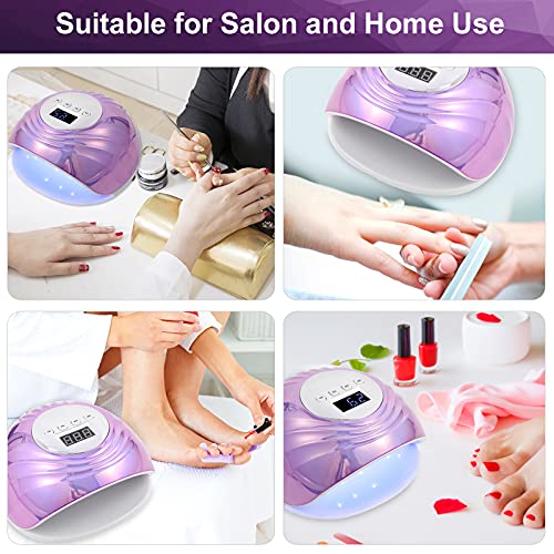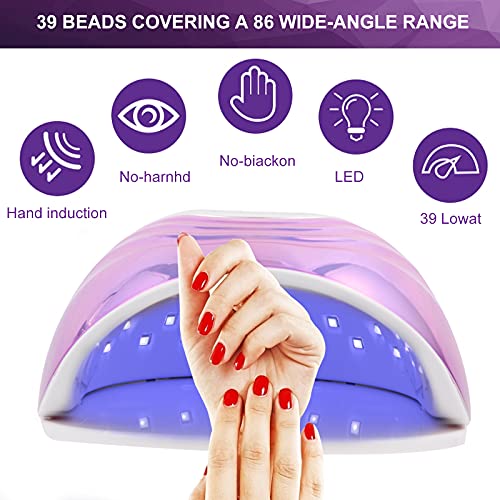 【86W Lampada Unghie Potente Efficiente】Lampada LED UV Unghie ha una potenza di 86 W si asciuga l'unghia gel in 5 -10 secondi e abbreviare il tempo di stagionatura di oltre il 80%. Fornisce un'esperienza delle unghie veloce e perfetta.Il tempo dipende dallo spessore e dal materiale del gel per unghie.