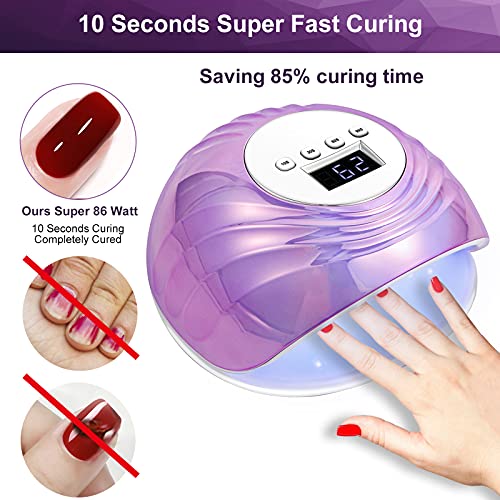 Shuye Lampada Unghie UV LED 86W, Può Curare Rapidamente i Raggi UV Gel, 4 Timers da10s 30s 60s 99s per Salone e uso Domestico