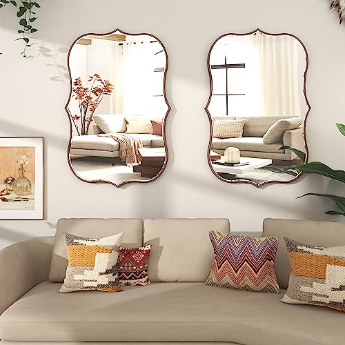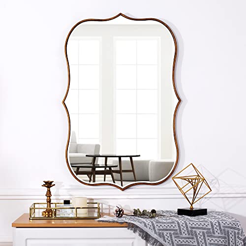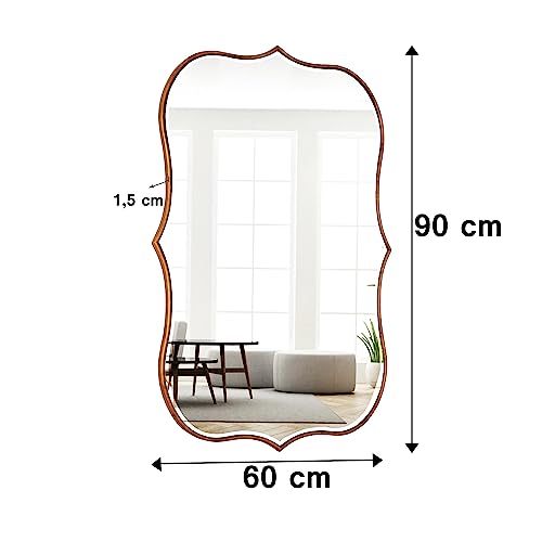 SHYFOY Specchio da Parete Moderno, 90 x 60 cm, Grande Specchio da Bagno Oro, Specchio Ondulato Asimmetrico con Cornice in Legno Smerlato, Specchio da Parete Dorato per Soggiorno