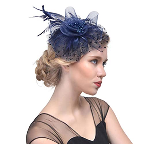 SHYKNYU Fascinators Cappello Tea Party Cappelli Fiore Mesh Piume Fascinator Fascia per Tea Party Matrimonio Fascinator Mesh Fascinator per donne ragazze