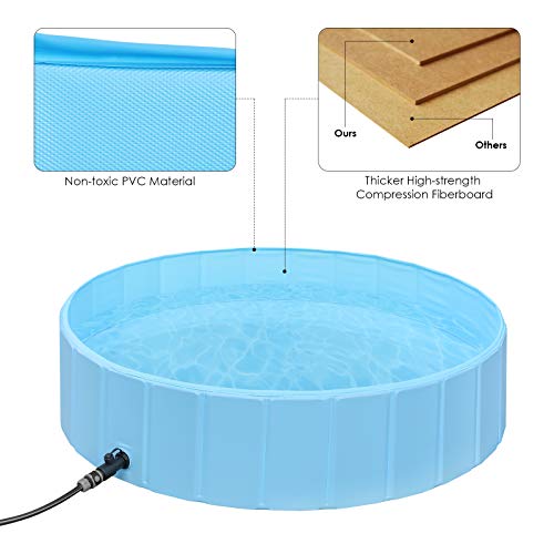 【Materiale Durevole】:La piscina per cani domestici è realizzata in materiale PVC atossico, fibra di compressione ad alta resistenza. Il design del fondo antiscivolo rende il tuo animale domestico più sicuro durante il bagno o il gioco.