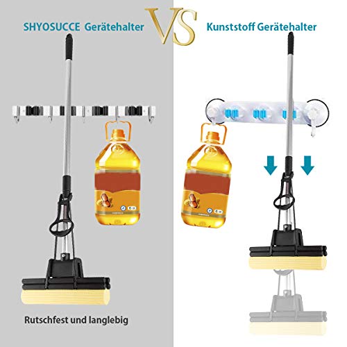 【4 Posti e 5 Ganci】:Rispetto ad altri portascopa e portaspazzole da muro in acciaio inox, Shyosucce è più 1 posti e 1 gancio per rendere la vostra casa più pulita e ordinata.