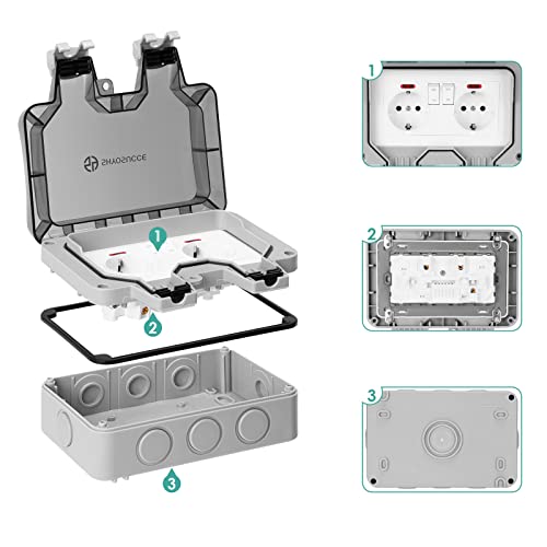 【Facile da Installare】:La scatola inferiore è montata sulla parete con viti ad espansione e connettori impermeabili, quindi la presa è montata alla base con viti e connettori impermeabili. Sezione del cavo fino a 2,5 mm².