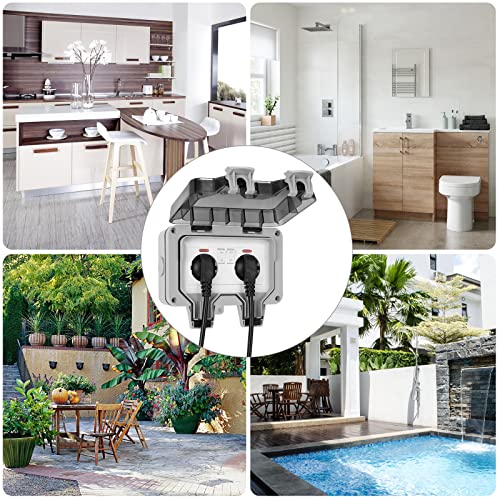 SHYOSUCCE 2 Presa Esterno Impermeabile IP66 con Interruttore, Connettore da Impermeabile e Coperchio Incernierato, Presa Elettrica Esterno per Cucina, Bagno, Garage, Piscina e Giardino