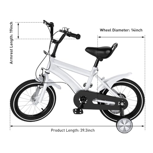 SHZICMY Bici per bambini Bicicletta da 14 pollici per ragazzi e ragazze con ruote da allenamento per bambini di 3-6 anni che imparano a guidare bianco/rosso/blu/giallo (Bianco)