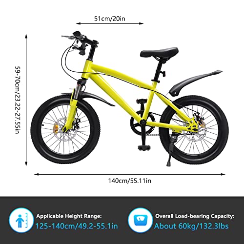 SHZICMY Bicicletta per bambini da 18 pollici, per bambini/ragazzi, altezza adatta per bambini, 1,25 - 1,4 m (giallo)