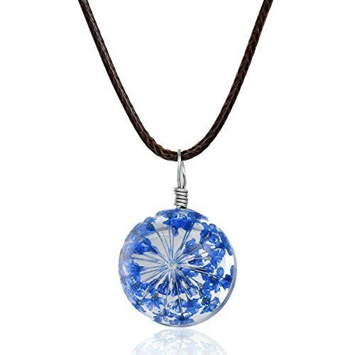 SiAura Material - Blu secchi Fiore in Sfera di Vetro, Marrone Scuro Catena di Cera 44,5cm Lungo