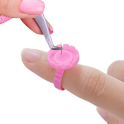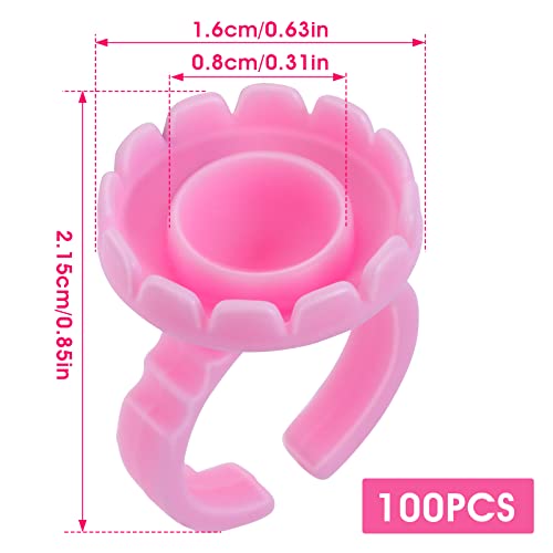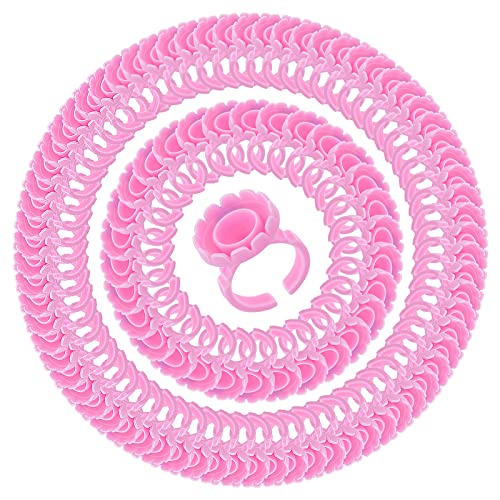 Sibba 100 Anelli di Supporto per Colla per Ciglia in Plastica Contenitore Ad Anello Vassoio per Coppe di Estensione Delle Ciglia (Rosa Rotondo)