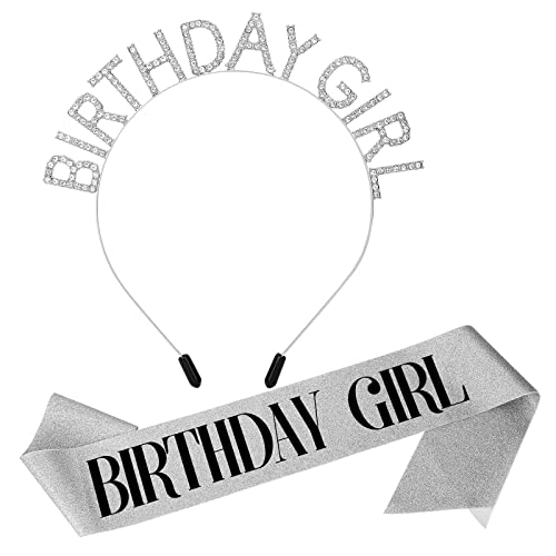 Sibba Diadema di Compleanno Corona di Buon Compleanno Fascia per Ragazza con Strass Idea Regalo per Donne per Festeggiare Feste E Balli di Fine Anno Accessorio per Lo Styling dei Capelli (Argento)