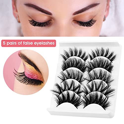 Sibba 5 paia di ciglia finte naturali lunghe 5D soffici incrociate drammatiche in finto visone, finte, riutilizzabili, confezione multipla