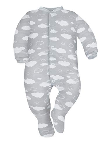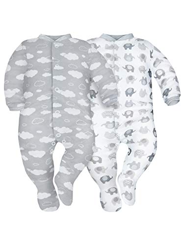Sibinulo Bambino Bambina Pagliaccetto Pigiama Cotone Pacco da 2 Nuvole ed Elefanti Grigi 74(6-9 Mesi)