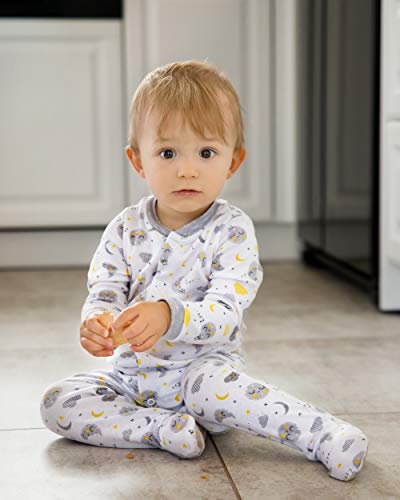 Sibinulo Bambino Bambina Pagliaccetto Pigiama con ABS Pacco da 4 Nuvole Elefanti Grigi Lune e Topi 80(9-12 Mesi)