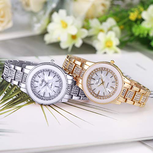 SIBOSUN Lady Orologio da polso da donna Bracciale in oro e acciaio con cristallo di quarzo
