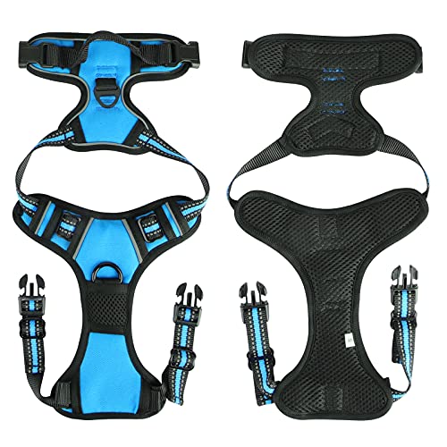 SIBOTER Pettorina Cane, Pettorina Cane Taglia Media Regolabile, Traspirante Pettorina Cane Taglia Grande con Guinzaglio, Pettorina Antifuga Cane per la Corsa, Passeggiate, Jogging (L, Blu)