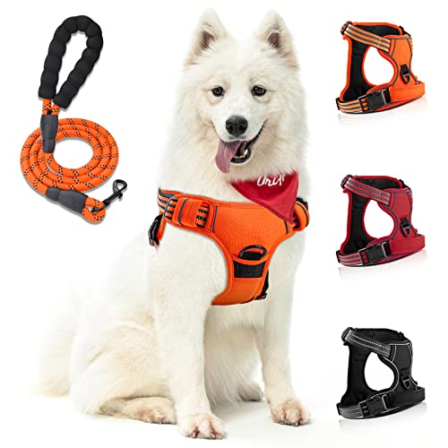 SIBOTER Pettorina Cane, Pettorina Cane Taglia Media Regolabile, Traspirante Pettorina Cane Taglia Grande con Guinzaglio, Pettorina Antifuga Cane per la Corsa, Passeggiate, Jogging (L, Arancia)