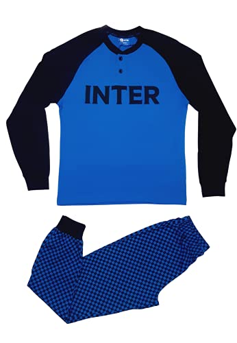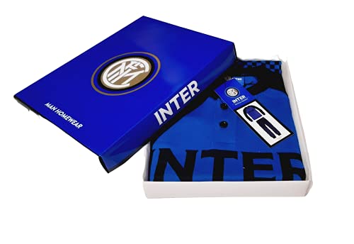 Pigiama serafino manica lunga, prodotto originale con ologramma sul cartellino. Lavare a 30 gradi, 100% cotone. Confezionato in scatola di cartone blu con marchio INTER.