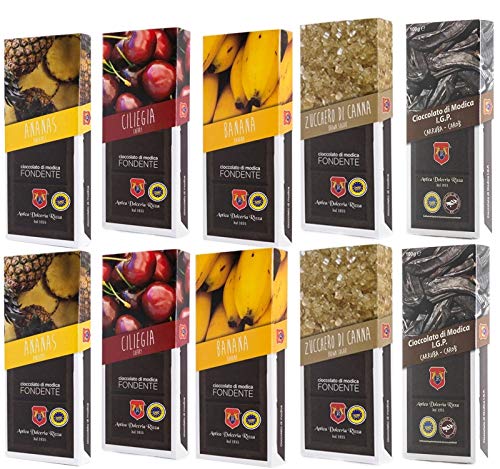 Sicilia Bedda - CIOCCOLATO DI MODICA IGP - 1 KG di Cioccolata di Modica SENZA GLUTINE - ANTICA DOLCERIA RIZZA (Carrubba/Ciliegia/Zucchero di Canna/Ananas/Banana)