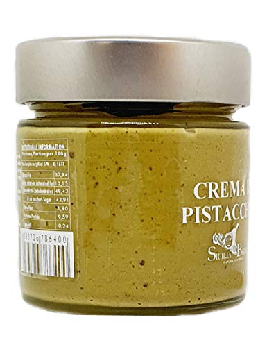 Crema di Pistacchio (30%): Delicata e deliziosa, dall'antica tradizione dolciaria di Sicilia, solo i migliori pistacchi vengono lavorati per offrirti la sublime crema di pistacchio, una gustosa leccornia capace di inebriare anche i più fini palati.