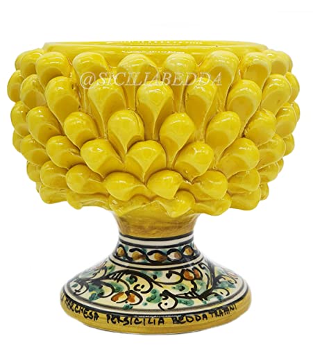 Sicilia Bedda - Mezza PIGNA in Ceramica di CALTAGIRONE con Piede Decorato Realizzata Interamente a Mano - Vaso Porta Fiori - Ogni realizzazione è unica per voi (Diametro 15, Giallo)