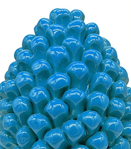 Sicilia bedda - Pigna Siciliana Ceramica di Caltagirone - Altezza 25 Centimetri Realizzata interamente a Mano (Celeste)
