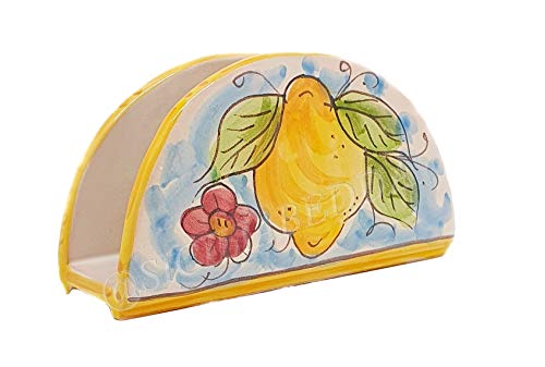 Sicilia bedda - PORTATOVAGLIOLI da TAVOLA in Ceramica di CALTAGIRONE - 100% Artigianale (Tradizionale Limoni)