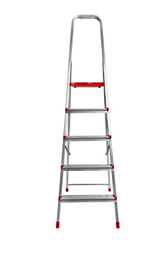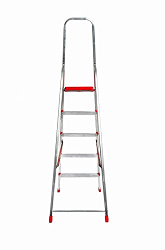 SICOS, Scala Domestica in alluminio, GOLDEN PLUS 5 GRADINI,1 Tronco di Salita con Piattaforma e Guarda-Corpo, COLORE ARGENTO, con PORTATA MAX 150KG. PESO 4,2 KG. MADE IN ITALY, per utilizzo domestico.