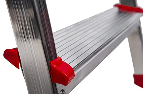 PRATICITA': Grazie al design moderno e minimale, è facile da ripiegare, permette di occupare 11,8 cm quando non viene usato. La struttura in allimunio, leggera ed antiruggine, fa si che la scala non oscilli quando non viene usata, infatti è molto solida e robusta.