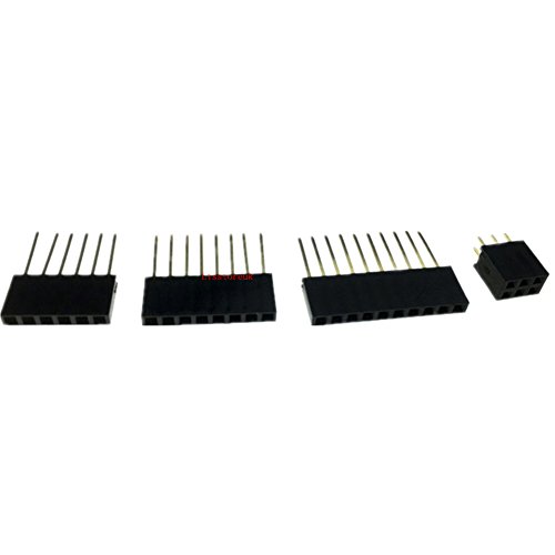 2.54 mm di sicurezza PCB pin header connettore striscia assortimento kit - Doppia fila femmina 3 pin e fila singola femmina 6/8/10 pin per Arduino Shield, impilabile, confezione da 110, venduto da Ltsstoreuk