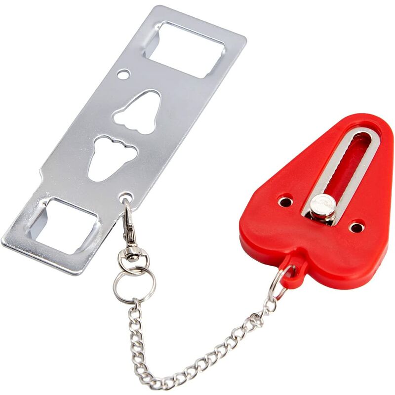 il secondo passo è chiudere la porta, quindi inserire la scanalatura maniglia rossa sul prigioniero della parte metallica, l'installazione è completata. AMPIAMENTE UTILIZZATO: Perfetto per motel, hotel, resort, dormitori, sicurezza degli appartamenti, affitti a breve termine, bagni, camere da letto, ecc. Può essere applicato anche per impedire agli animali di
