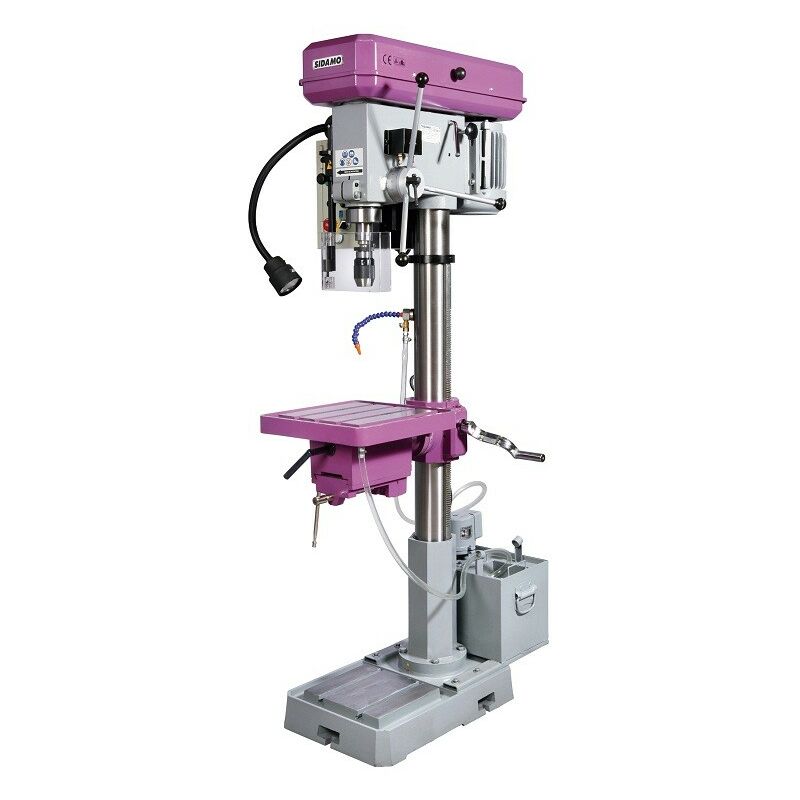 Dettagli: Telaio, testa e base in ghisaColonna in acciaioTrasmissione mediante cinghie trapezoidali con regolazione della tensioneMandrino montato su cuscinetti a sferaRitorno del mandrino regolabile mediante ritorno a mollaFermata di profondità di foraturaMotore a 2 velocitàControlli a bassissima tensione 24 VAFermata della frizione a manoMicrointerruttore di sicurezza del coperchio della puleggiaSistema di maschiatura semiautomatico con inversione manuale, Capacità M16Display in policarbonato servoassistitoIlluminazione a LED 24 VTavolo a morsa reversibile a 2 posizioni, con contatore graduatoVizio montato su slittaMovimento del tavolo a cremagliera Dotazione: Fornito con: Mandrino autoserrante, coda del mandrino Garanzia: Gentile cliente, il nostro partner SIDAMO garantisce gratuitamente il suo prodotto per 3 anni . Per poter beneficiare di questi 3 anni di tranquillità, è necessario registrare il prodotto sul sito web del produttore seguendo questo link . Non dimenticate di