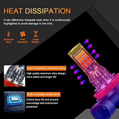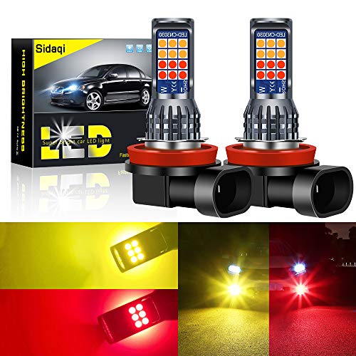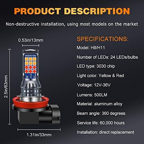 Sidaqi 2Pcs Dual Color 7.5W H8 / H11 Bright Car Led Fendinebbia Lampadine 2835 24 SMD per luce di marcia diurna DRL Fendinebbia 12V (giallo e rosso)