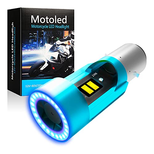 Sidaqi Lampadine per fari moto BA20D LED con 5 colori Angel Eye, 25W 2600LM Super Bright H6 LED bianco 6000K di ricambio per lampada moto DC12-24V (1 PCS)