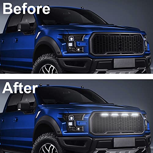 Sidaqi 4 LED 12W Luci di avvertimento griglia anteriore auto bianche Luci di marcia diurna ambra DRL Copri paraurti anteriore Lampada adatta per SUV Fo-rd F-150 Raptor 2014-2020 Impermeabile