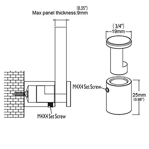 【DIMENSIONAMENTO E IMBALLAGGIO】 Il distanziatore misura Φ16x19mm, serve a contenere lo spessore della lastra max 6mm. Confezione da 4 unità, comprese 4 viti, 4 tasselli e 1 chiave per aiutarti a montarlo facilmente.Se hai qualche problema, non esitare a contattarci, ti risponderemo e risolveremo il tuo problema in 24 ore