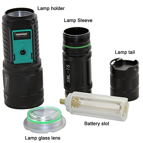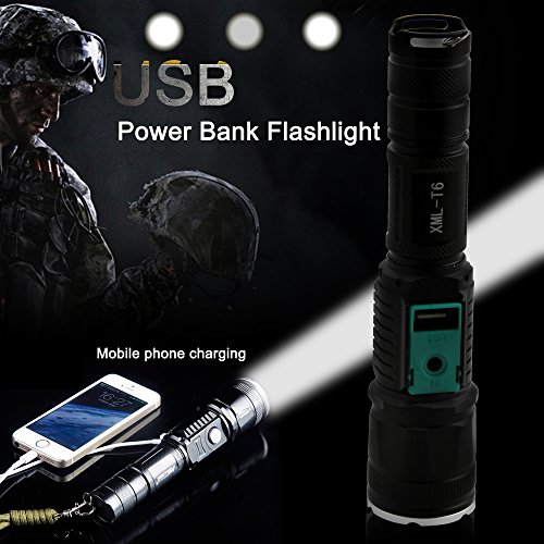 Sidiou Group 2nd Generation torcia ricaricabile 10W del CREE XM-L T6 1200Lm Zoomable messa a fuoco regolabile Torcia USB Charger Power Bank torcia con 2x18650 batteria ricaricabile + Cavo USB + staffa biciclette